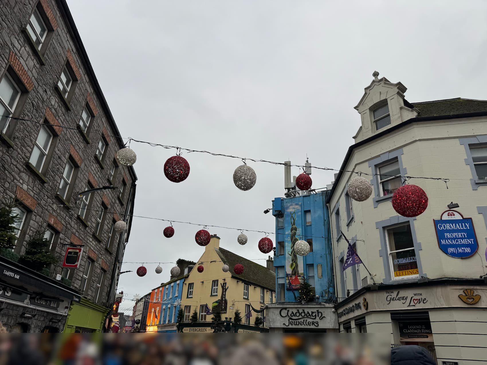 Nach ungefähr zwei weiteren Stunden Fahrt, erreichten wir Galway City, wo unser Tourguide uns etwa 30 Minuten durch die Stadt führte. Anschliessend hatten wir noch etwa eine halbe Stunde zur freien Verfügung. Nach einem Crêpe und einer Fahrt auf dem Riesenrad des dortigen Weihnachtsmarktes, traten wir die Rückfahrt nach Dublin an.