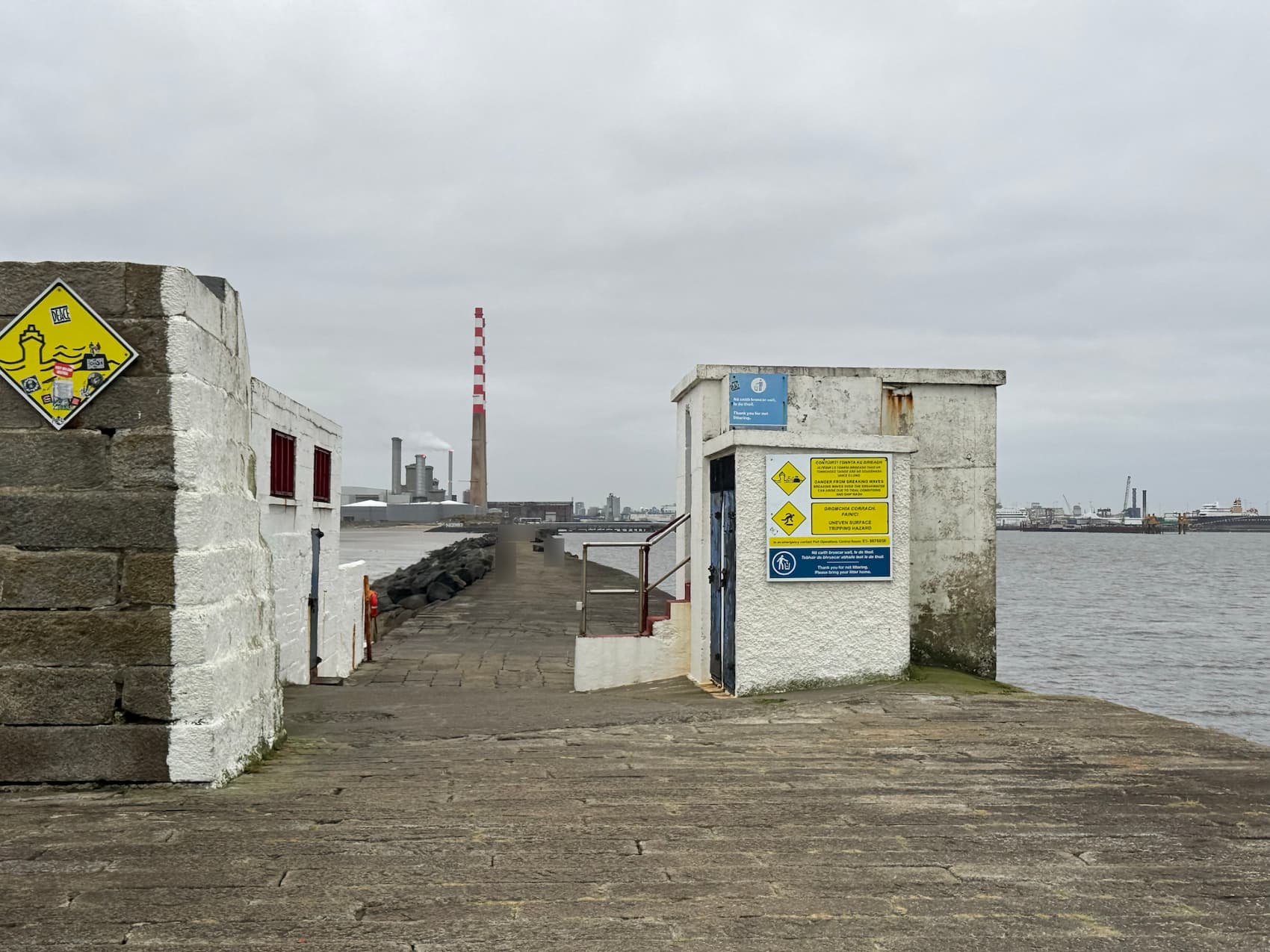 Mit dem Bus fuhren wir zuerst etwa 20 Minuten in die Nähe der Sean Moore Road. Anschliessend liefen wir ca. 45 Minuten durch ein Industriegebiet, vorbei an der Müllverbrennung (Waste to Energy Dublin) und dem Hafen von Dublin. Als wir schon nicht mehr daran glaubten, dass der Leuchtturm noch vor uns auftauchen würde, näherten wir uns einem Parkplatz. Von da aus, waren es noch wenige Minuten bis zum Steg in Richtung Leuchtturm. Dort angekommen, lag noch etwa zwei Kilometer (ca. 25 Minuten) Fussweg vor uns - über den Steg, bis zum Leuchtturm. Dort angekommen, konnten wir den schönen Leuchtturm bewundern und einige Fotos machen.